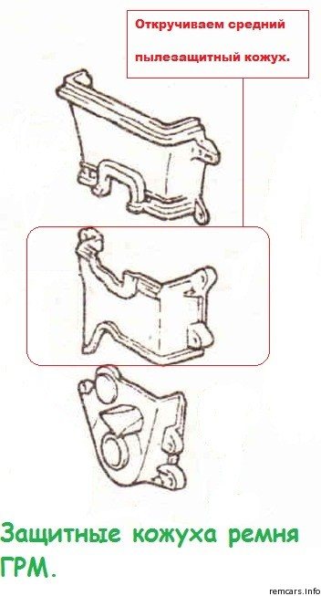 Снятие защитного кожуха ремня ГРМ и шкива коленчатого вала: