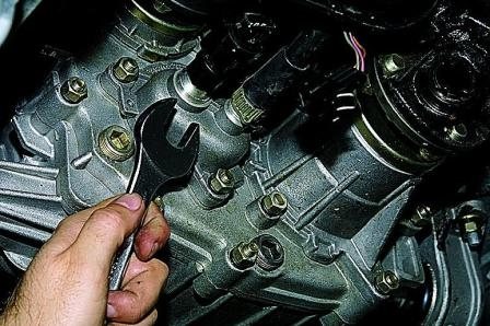 - при помощи торцового ключа откручивают фиксирующий болт, который крепит корпус привода и коробку передач;