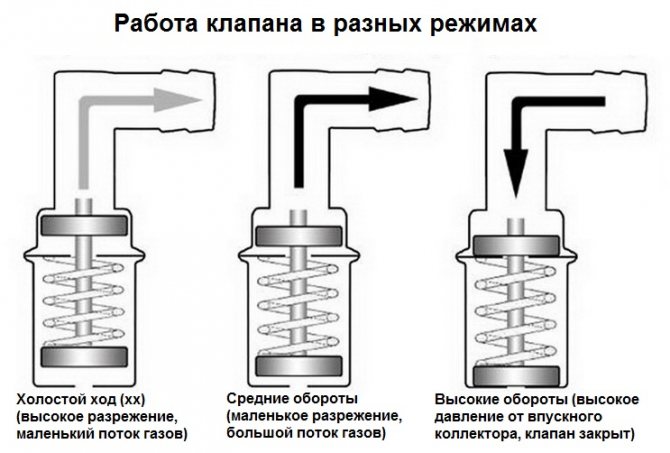 Работа клапана вентиляции картерных газов в разных режимах