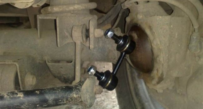 Стойки бывают передние и задние в зависимости от того на какой оси присутствует стабилизатор. Они подвижно крепят его к подвеске. Для того, чтобы увидеть стойки следует получить доступ к днищу авто или снять колесо.