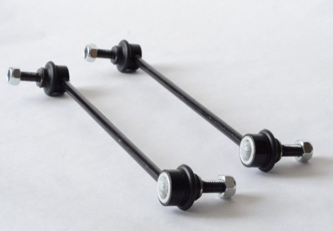 Замена. Стойки — это шток с шарнирами на концах длиной 5-20 см. Шарниры в конструкции нужны для того, чтобы обеспечивать подвижность во время соединения стабилизатора и поворотного кулака. Так как в системе есть шарниры, стойки выступают в роли демпферов — принимают на себя максимум нагрузки, которая поступает на стабилизатор поперечной устойчивости. Так как нагрузка на данные элементы подвески слишком высокая, периодически требуется проводить замену стоек стабилизатора. Рассмотрим основные признаки, которые могут указать на необходимость замены: