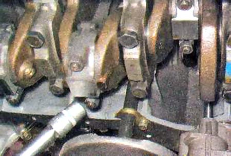 Торцовым ключом на 17 мм ослабляем болты крепления крышек коренных подшипников коленвала