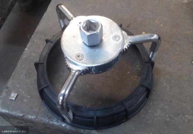 С фиксатором придётся повозиться, как вариант съёмник масляного фильтра