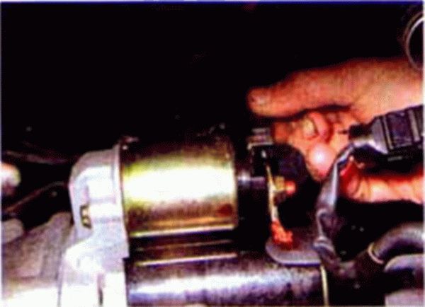 - Отсоедините провод, идущий от контактного болта тягового реле к статорной обмотке.