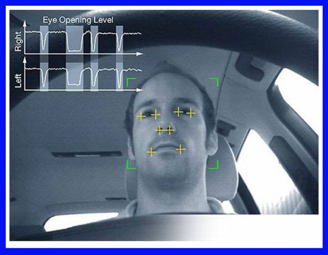 Поэтому в японских авто основным элементом системы контроля выступает видеокамера. В ее задачу входит контроль мимики и движений человека, и в первую очередь датчик усталости обращает внимание на закрытые глаза автовладельца, подавая звуковой сигнал. Во избежание ложных срабатываний, анализу подлежат и другие данные – частота моргания, глубина дыхания, определяемая по движениям грудной клетки, мимика и движения самих глаз.