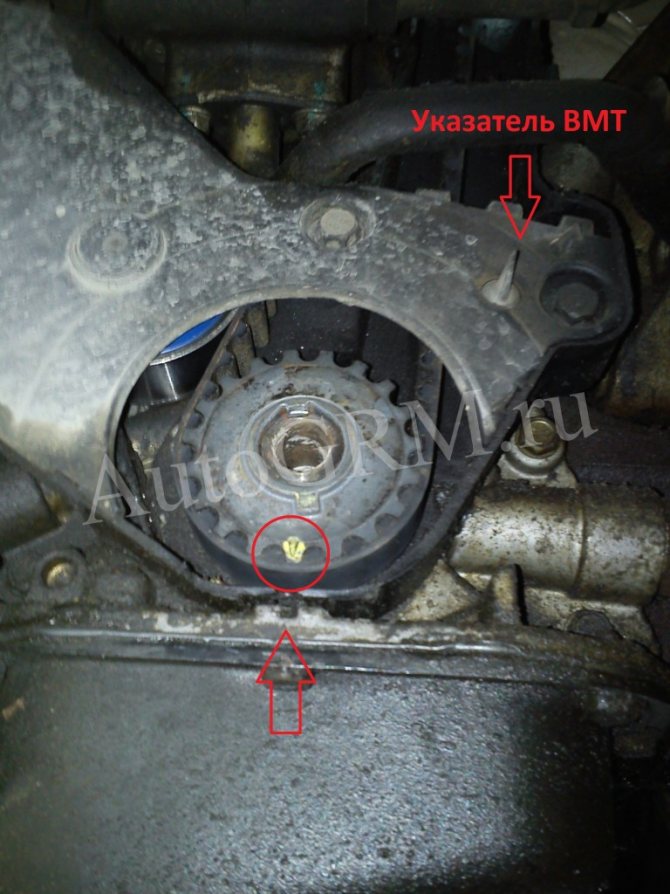 Правильность фаз газораспределения обеспечивается правильным положением установочных меток. Они имеются на шкивах распредвалов, коленвала, блоке цилиндров.