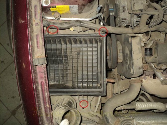 - Сначала снимается корпус фильтра для воздуха и все, что к нему присоединено.
