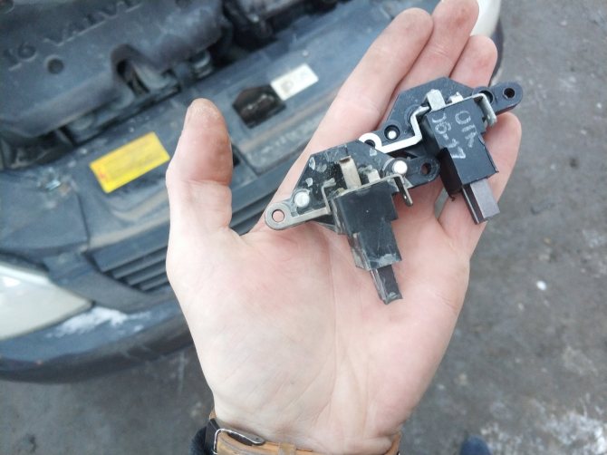 - Демонтировать регулятор, который обычно находится с противоположной стороны от генератора.