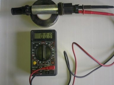 - Следующим этапом будет проверка модуля на предмет обрыва первичных цепей. В этом случае мультиметр подключается к контактам модуля, левому и правому, расположенному по краям. В том случае, если на этом шаге полученные параметры не изменились, то это свидетельствует о наличии обрыва. Как показывает практика, обычно в таких случаях требуется замена модуля. Обычно обрыв в цепи модуля появляется в результате жестких условий использования зажигания.