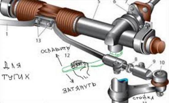 После этого следует проверка на люфт и , если надо, процедура повторяется, так как люфт может быть больше или меньше. Перетягивать нежелательно, будет тяжело вращать руль. Достоинство этого метода в удобстве регулировки, недостаток же в том, что приходится снимать и потом ставить на место рулевую рейку, а это требует времени, определённых знаний и навыков.