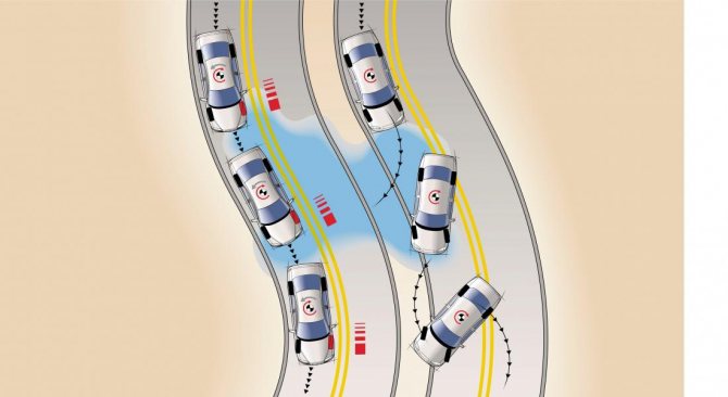 Если говорить просто, то дополнительная электроника в машине позволяет при совершении маневра не выехать на встречную полосу и не оказаться в кювете. А ведь это сделать не так сложно, если на мокрой или скользкой дороге на высокой скорости выкрутить рулевое колесо.