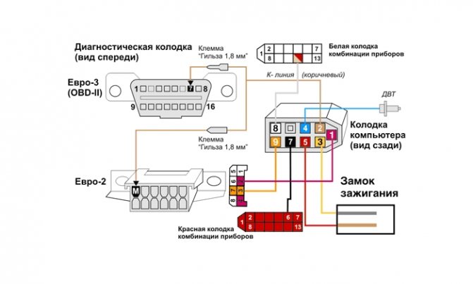- к колодке диагностики;