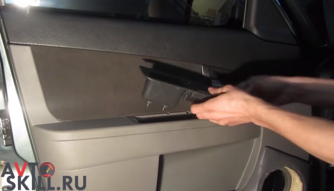 - Аккуратно снимите ручку стеклоподъемника, отложите в сторону.