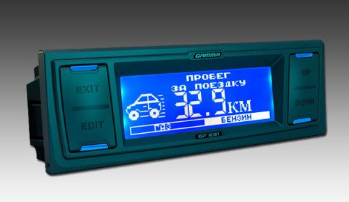 - устройство демонстрирует расход бензина при разных режимах движения;