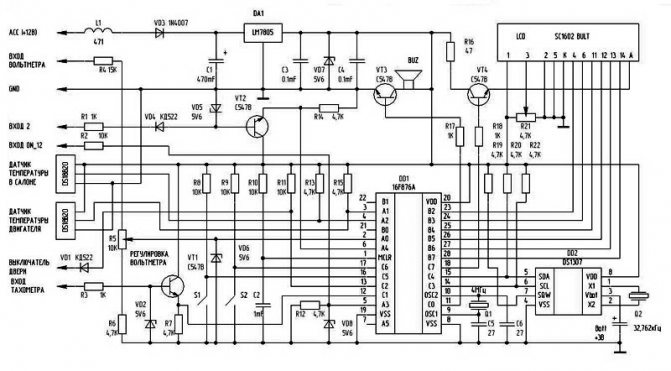 - Контроль за температурой двигателя и аварийная сигнализация;