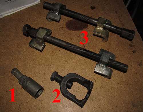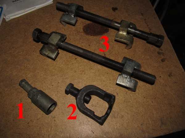 1- ключ для снятия опорника, 2- съемник для наконечников (можно без него обойтись), 3- стяжки для пружин