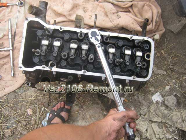 - Прежде всего, вам потребуется снять крышку головки. Подробнее об этом процессе вы можете прочитать в статье ВАЗ 2106: замена прокладки крышки.