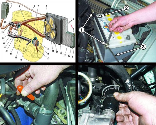 2. Отсоединяем провод от «минусовой» клеммы аккумуляторной батареи. Сливаем охлаждающую жидкость.