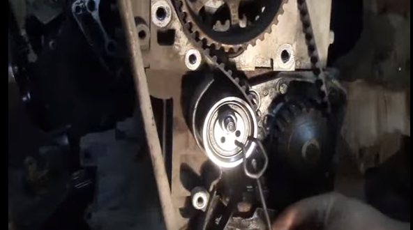 - Затем нужно проверить работу. Болт крепления шкива коленвала прокручивают на 2 оборота и проверяют, совпадают ли метки и сохранилось ли натяжение ремня. Если что-то не так, гайку ролика ослабляют и ремень натягивают ещё раз.