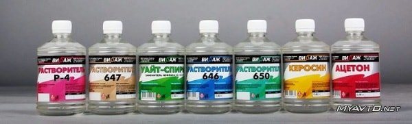 Растворитель для покраски автомобиля один из важнейших и обязательных компонентов в малярных работах. Их существует большое множество и только определённые нужны для правильного разбавления краски. Так вот чтобы не ошибиться, как разводить краску, акриловую или любую другую, рассмотрим основные виды растворителей и их применение.