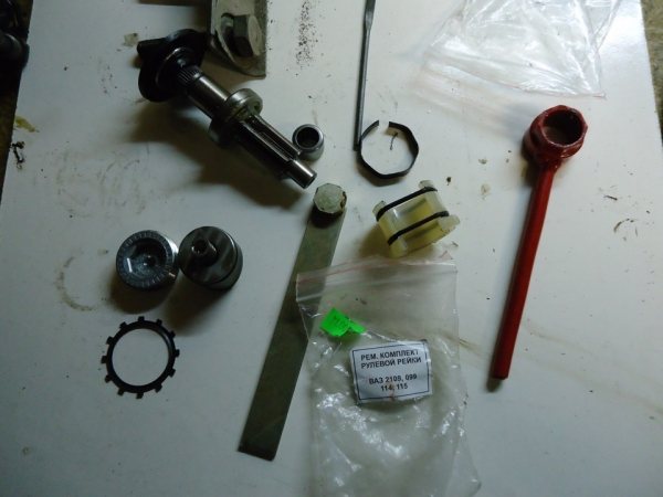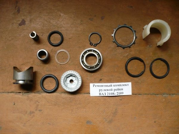 Для ремонта своими руками вам потребуется приобрести специальный комплект из мелких комплектующих механизма, состоящий из: игольчатого и опорного подшипника, пластиковой втулки, прокладок, колец, рейки, кожуха и стяжек для пыльника. Существует два вида комплектов: для капитального и частичного ремонта. Лучше всего брать первый вариант, так как неизвестно что вам потребуется заменить в процессе разборки реечного механизма.