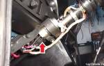 - Теперь требуется «отцепить» от насоса все штекеры и штуцеры. Для удаления штекера питания нужно отжать фиксатор вверх, а штекер потянуть в сторону. Сам штекер питания находится с левой стороны крышки бензонасоса;