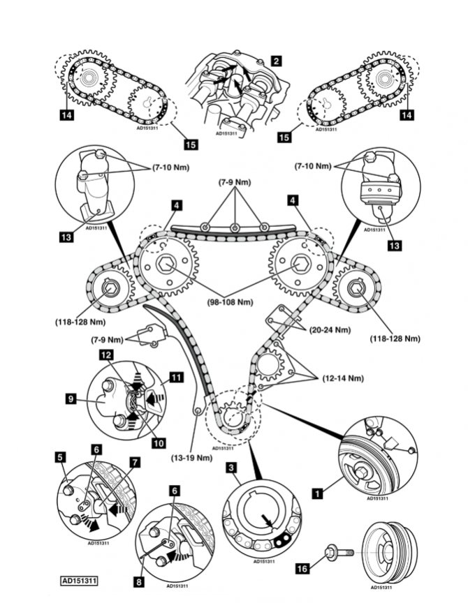 Производителем данного комплекта ГРМ артикул ECC1006 является компания Турбо Инжиниринг, а цена комплекта составляет 12800 рублей. Цепь ГРМ — это не та деталь, на которой стоит экономить. Между стоимостью и надёжностью однозначно выбирайте второе. Низкокачественная цепь может порваться очень быстро. Необходимость замены цепи и срок ее службы можно продлить, всего лишь соблюдая банальные правила эксплуатации автомобиля: вовремя проводить технический осмотр, менять моторное масло вовремя, использовать качественное и соответствующее моторное масло и топливо и т.д. Предложенная ниже схема метки цепи грм поможет вам с самостоятельным выставлением меток!
