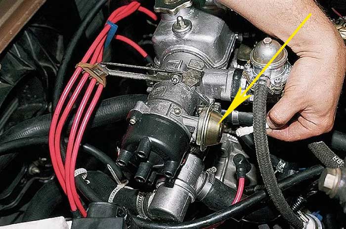 - Очистка контактов трамблера от нагара и регулировка зазора.
