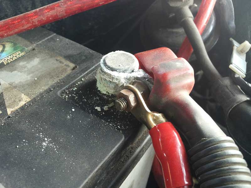 При окислении клемм на аккумуляторе, возможны проблемы как с пуском двигателя, так и с образованием искры