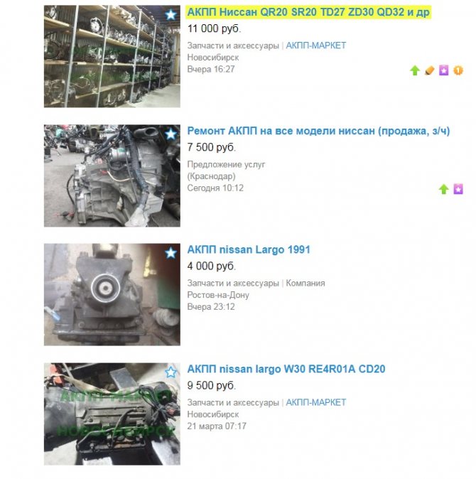 Составляющие моторов при необходимости меняются на аналоги других производителей. Например, ремонтируя трамблер ka24de при замене катушки зажигания с маркировкой CM1T-227 можно использовать катушку Mobiletron CN-01. Стоит такой аналог в 2 раза дешевле, что, несомненно, радует. Отсутствует необходимость длительное время искать акпп nw30 для nissan largo. Коробки модели 44×04 в широком ассортименте представлены на вторичном рынке, в том числе варианты на запасные части.