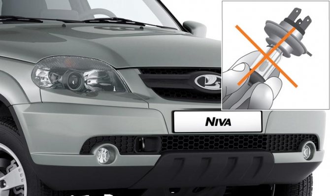 Важно! При установке ламп ближнего света на Шевроле Нива нельзя брать их за колбы голыми руками или грязными перчатками.