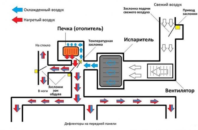 Далее от блока управления идет сигнал на определенные исполнительные устройства, такие как температурная заслонка. Весь процесс регулировки и снятия информации с датчиков выполняется полностью автоматически.
