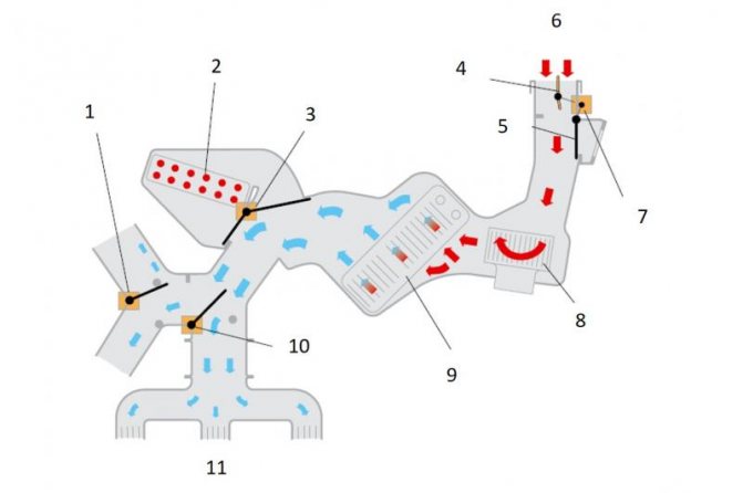 Базовый вариант климатической установки распределяет потоки по направлениям: