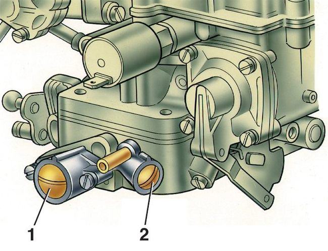 1 — Винт количества, 2 — винт качества топливной смеси