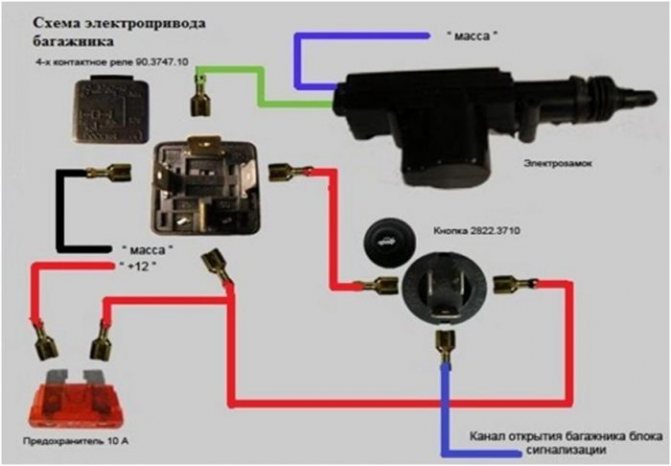 Электропривод багажника своими руками устанавливается по следующей схеме:
