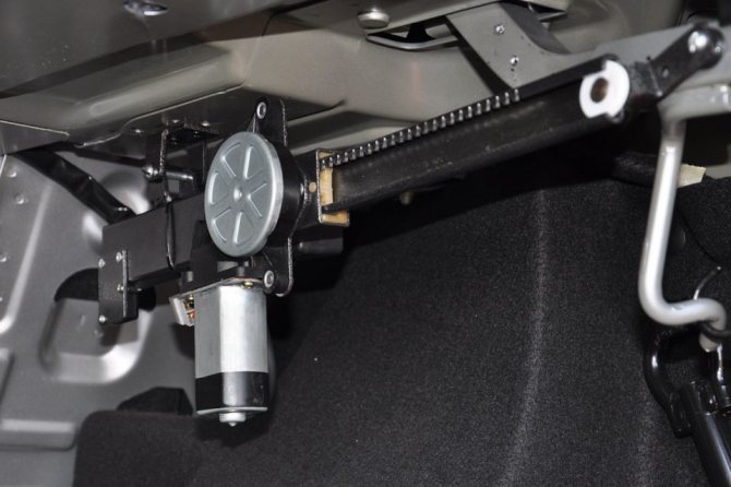 - Один конец механизма от стеклоподъемника, который не задействовали, монтируют на держатель крышки багажника;