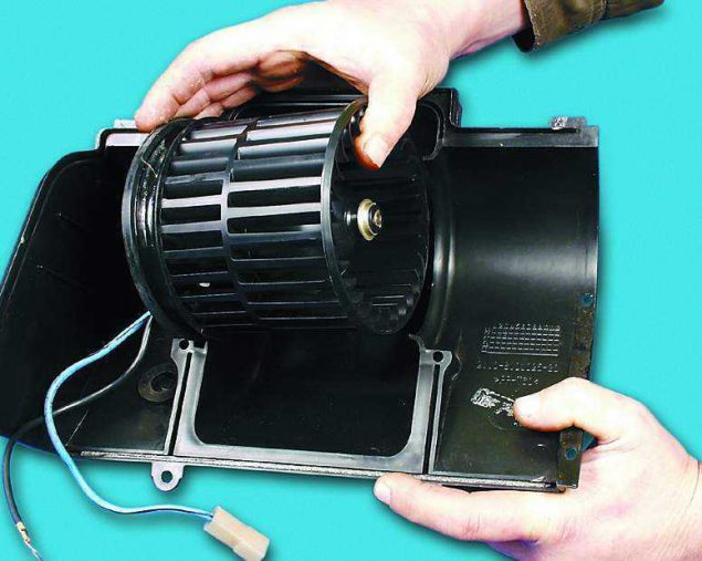 Замена вентилятора отопителя производится после того, как электродвигатель отключен, извлечен и очищен.