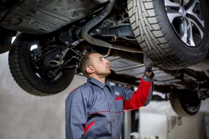 - Автомобиль необходимо закрепить на подъемнике и снять колеса;