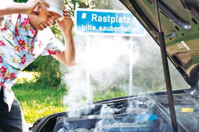 - появление пара под капотом, сообщающее о закипании охлаждающей жидкости.