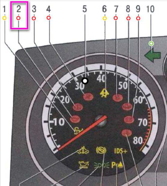 Данные системы устанавливаются опционально. Горящая желтым цветом лампа указывает на их поломку.
