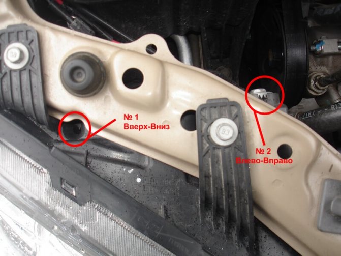 - Отмеченные шестеренки по краям фары производят регулировку светового пучка вправо и влево