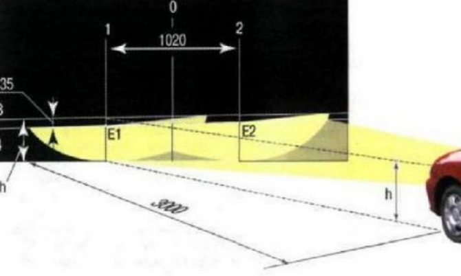 Существует также возможность и самостоятельной регулировки положения света, причем особого оснащения не требуется. Достаточно поставить авто на ровную площадку перед стеной — так называемая регулировка по экрану.