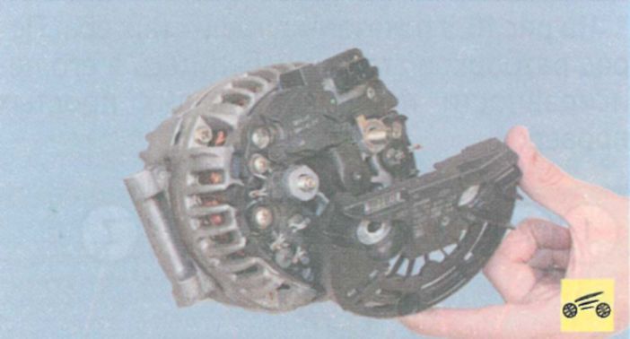 1. Снимите генератор с автомобиля (см. «Снятие и установка генератора», с. 168).