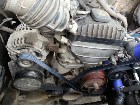 - Чтобы заменить изделия (обводной и натяжной), нужно снять воздухан и сам ремень привода навесных агрегатов.