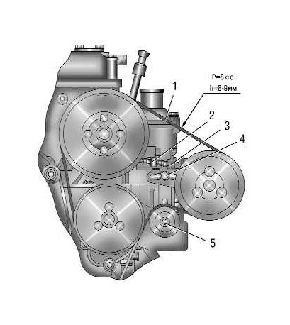 Регулировка натяжения ремня привода вентилятора и насоса гидроусилителя рулевого управления.
