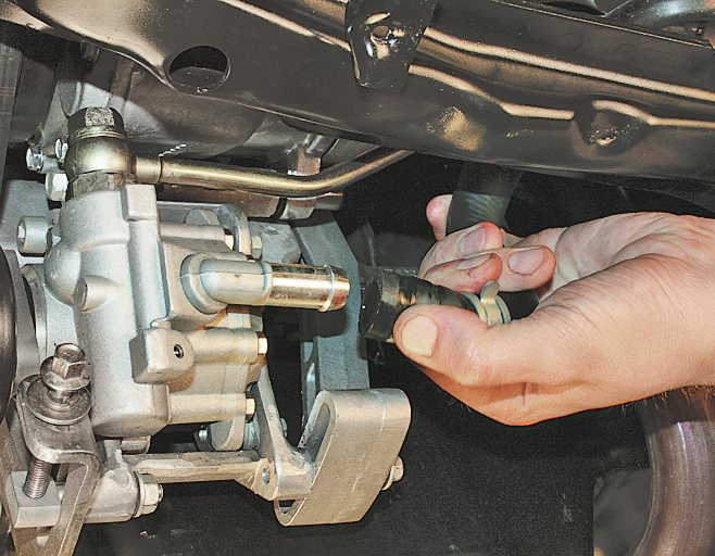 Для замены шлангов или патрубков сначала следует открутить хомуты. Установка новых шлангов вызывает некоторые неудобства, так как расположение гидроусилителя не совсем удобное для выполнения таких операций. Новые шланги и патрубки следует хорошо зафиксировать хомутами. Однако не стоит сильно усердствовать, чтобы их не повредить.