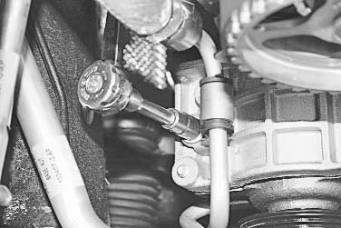 - Снимаем штуцерный болт и отсоединяем нагнетательный трубопровод.