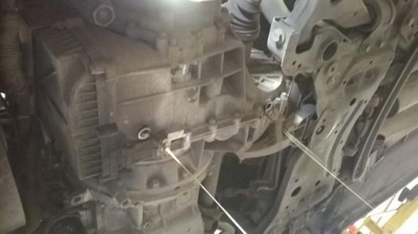проверить уровень масла привычным способом (при помощи щупа) не получится. Щупа как такового попросту нет. Проверить уровень масла можно через контрольное отверстие – оно находится в нижней части автомобиля. Автомобиль нужно поднять домкратом или любым другим способом. При этом поддон картера снимать не требуется, достаточно получить доступ контрольному отверстию, оно расположено рядом со сливным и заливным. Открыв пробку, нужно внимательно осмотреть горловину. Если она сухая и следов масла не видно – требуется долив.