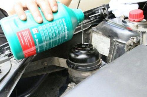 - До верха налить свежее масло в систему гидроусилителя.