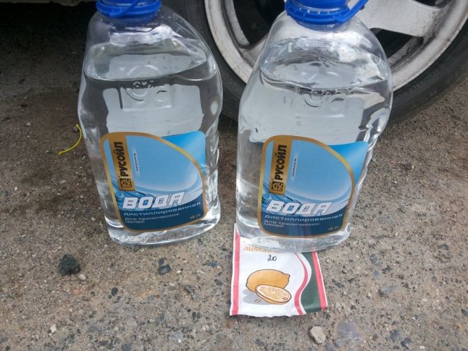 - Через расширительный бачок в систему заливается дистиллированная вода. Воду из-под крана использовать не рекомендуется. Из-за нее в системе образуется накипь. Объем воды для промывки — 7-9 литров.